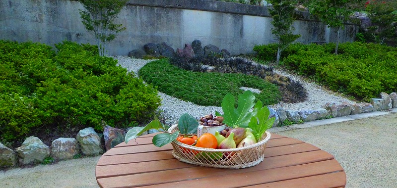 山荘に戻ると栗、柿、など収穫の秋を演出している。