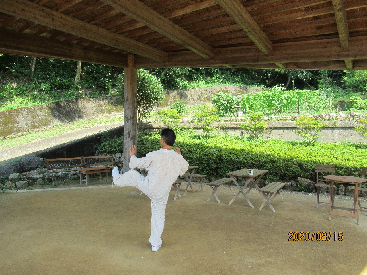 過ごせます。とは言え外気温が37度を上回る中、太極拳練習に
