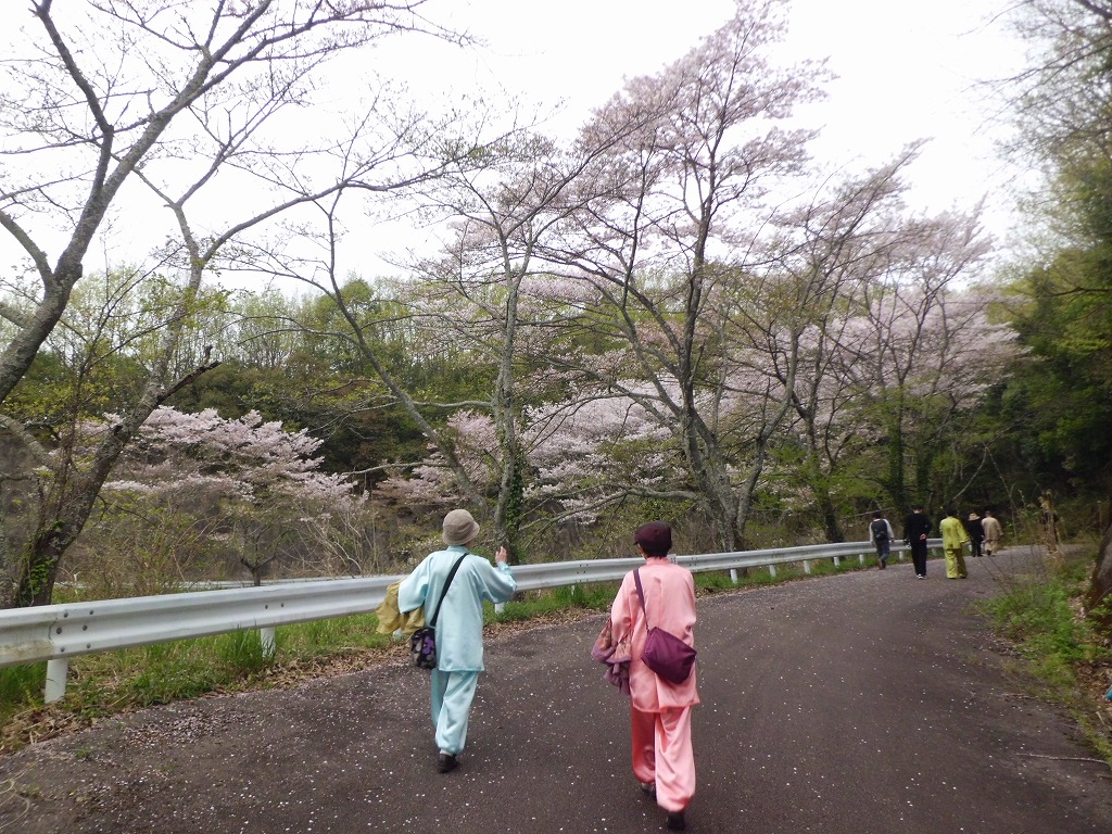 太極拳の練習会を開催しました。桜吹雪が舞う中、