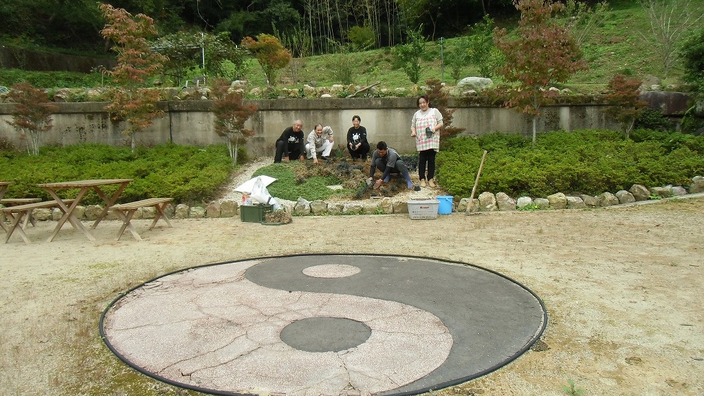 太極山荘の象徴である陰陽模様の花壇も見事にひっくり返されました。